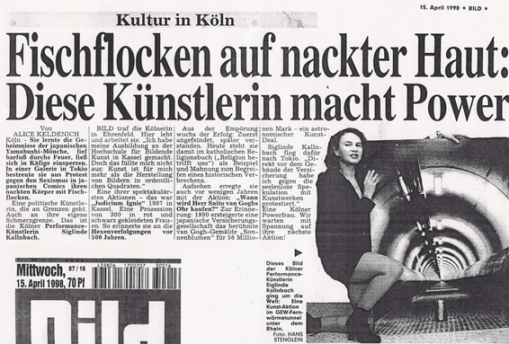 Bereits Ende der 1980er und Anfang der 1990er Jahre führte die Künstlerin Siglinde Kallnbach Performances zum Thema „Neo-Faschismus und Ant-Faschismus“ und „Deutsche Einheit“ durch: eine Aktion mit verschimmelten Würstchen zum „Bürgerfest der Bundesrepublik Deutschland“ 1989 in Kassel brachte ihr Verwünschungen aus der rechtsradikalen Szene ein; ihr Performance „Das Lied der Deutschen“ im gleichen Jahr mit einem Wellensittich als Mitakteur hatte ein aufsehenerregendes Gerichtsverfahren zur Folge, weil der Vogel in Eipampe getaucht wurde. In zwei Instanzen erzielte Siglinde Kallnbach jedoch 1990 einen Freispruch, weil das Gericht ihr attestierte, die Performance sei „avantgardistische Kunst und nicht etwa eine Zurschaustellung des Wellensittichs... oder Verdummung des Publikums“, zumal Wellensittich Hansi den Auftritt unbeschadet und putzmunter überstanden hatte. Die Betroffene habe „sich auf ihre Art mit dem Thema“ der Nationalhymne auseinandergesetzt, bescheinigte ihr der Richter in der Urteilsbegründung: „... damit greift das Freiheitsrecht des Art. 5 Abs. 3 (GG) und schützt auch die Betroffene als Performancekünstlerin“. Eine hohe Zeitaktualität hätte auch heute – ein Vierteljahrhundert später - immer noch Kallnbachs sechsstündige Performance auf dem Claraplatz in Basel, als sie dort mit zugeklebtem Mund und bewegungslos in einem Eisenkäfig ausharrte. „Damit erinnerte sie als Deutsche im Ausland an die Reichspogromnacht in Hitlerdeutschland und an die überfallenen Asylanten im heutigen Deutschland“, hieß es dazu in einer Ankündigung. Der Galerist Dirk Balke, Organisator der Ausstellung „25 Jahre deutsche Einheit“ mit Thomas Baumgärtel und Harald Klemm in der Ausstellungshalle der Düsseldorfer Künstlerinitiative „Werft 77“, lud die Künstlerin ein, dort zur Finissage dieser Ausstellung am 18. Oktober 2015 eine ihrer „Stückwerk“-Performances zum Thema aufzuführen (ab 14 Uhr, Reisholzer Werftstraße 75-77, Düsseldorf-Reisholz).