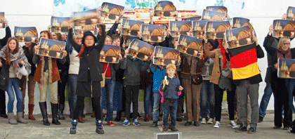 Formuliert in Kölsch (Och no dem 11.11.17: Mer stonn zesamme – für unsere Fasteleer!), Hochdeutsch, Englisch (Schließlich sind seit vielen Jahren Musikgruppen aus England und Schottland Teil dieses größten Karnevalszugs aller Kölner Stadtteile.) und 10 weiteren Sprachen machten die Jecken klar, daß sie sich ihren Karneval nicht nehmen lassen und Krawallmachern, Wildpinklern, Grapschern, Trunkenbolden und anderen, die sich nicht benehmen können, Paroli bieten und eine klare Absage erteilen. Die Künstlerin Siglinde Kallnbach, deren Gruppe „a performancelife e.V.“ im nächsten Jahr ihr 10 - jähriges Bestehen feiert, hatte dazu aufgerufen. Es solidarisierten sich Vertreter fast aller Gruppen, die im nächsten Jahr im Zug dabei sein werden und unterschrieben auf einer runden Board ihres internationalen Kunstprojekts „a performancelife“, diesmal der Solidarität mit dem Karneval gewidmet. (19.11.17)